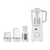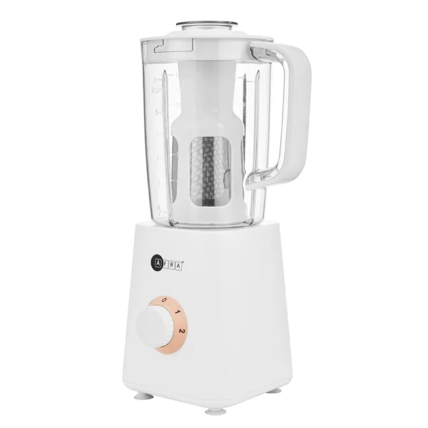 The AFRA 3-in-1 Stand Blender is a versatile kitchen appliance, designed to provide efficient blending, mixing, and food preparation. With a 400W motor and a 1500ml blender jar, it offers sufficient power and capacity for daily blending tasks. The high-quality stainless steel blades and filter ensure smooth, consistent results, while the included measuring cup allows for easy refills and accurate measurements. The blender operates quietly, thanks to its low-noise design, and features non-slip feet for stability during use. Additionally, the micro safety switch ensures safe operation, while the 2*0.5mm2 power cord and BS plug provide secure connectivity.