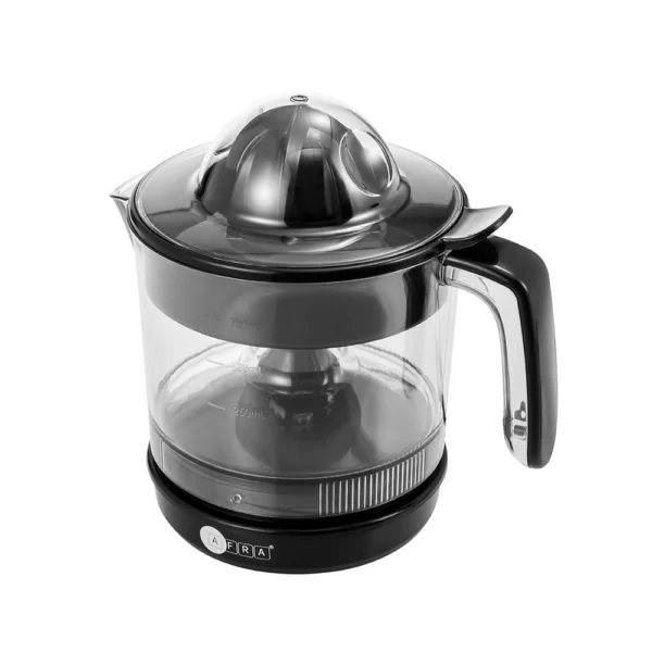 The AFRA Juicer is a compact and efficient appliance for everyday juicing. With a low-rated power of 25W and a 750ml capacity, it’s perfect for making fresh juice with minimal energy consumption. The AC 4420 bisynchronous copper motor ensures smooth operation, while the durable PP+AS materials guarantee longevity. The juicer is equipped with a 1m external cord and a BS plug for easy connection. Its sleek black design fits well into any kitchen, offering an excellent solution for small to medium-sized juicing needs.