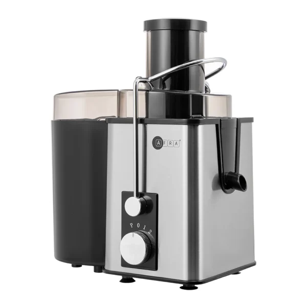 The AFRA Juicer is a powerful and efficient appliance designed for fast and convenient juicing. With a 400W motor and 2-speed settings, including a pulse function, it offers optimal performance for extracting juice from a wide range of fruits and vegetables. The 65mm diameter tube allows you to juice larger pieces of fruit without excessive prep time. It features a 550ml juice jar and a 1000ml pulp cup, providing ample capacity for both juice and waste. Made from high-quality ABS, AS, PP, and stainless steel, the juicer ensures durability and easy maintenance. The BS plug with a 1-meter power cord ensures compatibility and convenience.