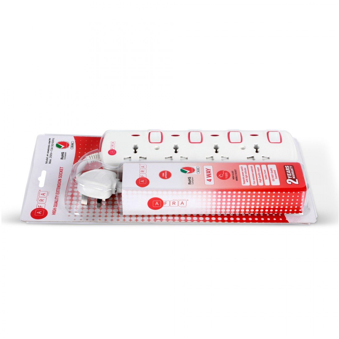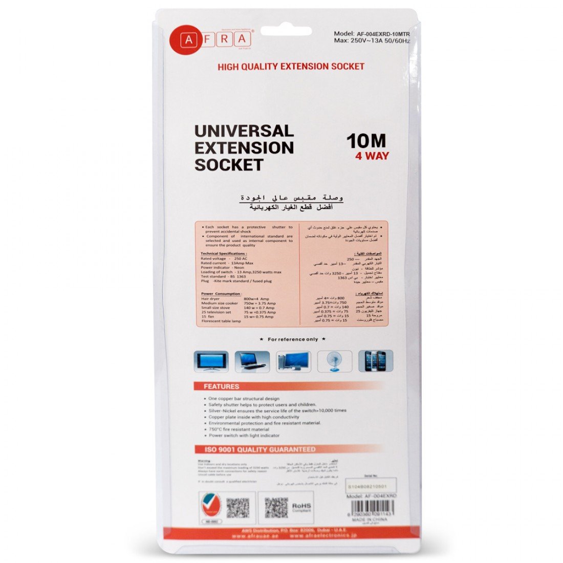 The AFRA Extension Cord (Model AF-004EXRD-10MT) offers powerful, long-range connectivity with a robust 10-meter cable and 4 universal sockets, ideal for homes, offices, or industrial setups. Designed for convenience, it features easy setup and storage with a shockproof plastic housing that ensures user safety. The 250V capacity supports a wide range of electronics and appliances. Whether you’re working in a large room or outdoor workspace, this durable extension cord gives you flexibility and reliable performance. Backed by a 2-year warranty, it’s built for lasting, safe use.