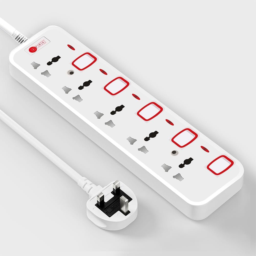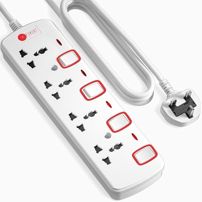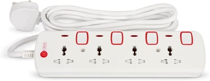 The AFRA Extension Cord – Model AF-004EXRD-5MT is a durable and efficient solution for powering multiple devices safely. With 4 universal sockets and a 5-meter cable, it offers extended reach and compatibility with a wide range of plugs.
