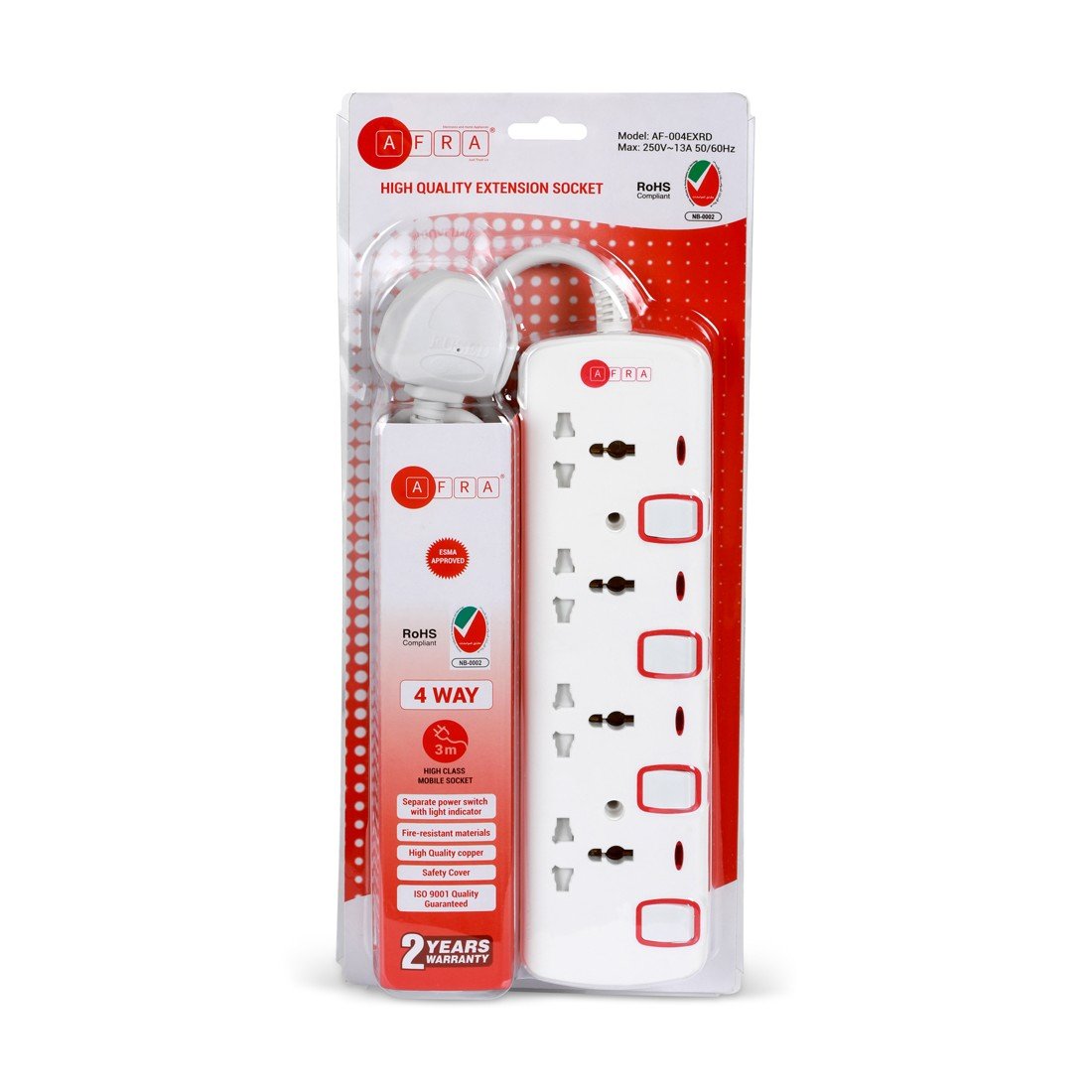 The AFRA Japan Universal Extension Cord (Model AF-004EXRD) is a safe and efficient power extension solution, ideal for home, office, or commercial use. With 4 universal sockets and a 3-meter heavy-duty cable, it offers ample reach and versatility for powering multiple devices. Designed according to Japanese standards, it supports up to 250V and features shock-proof construction for maximum user safety. Built for durability and daily use, this extension cord is perfect for electronics, kitchen appliances, computers, and more. Trust in AFRA’s quality with this reliable and secure power extension solution.