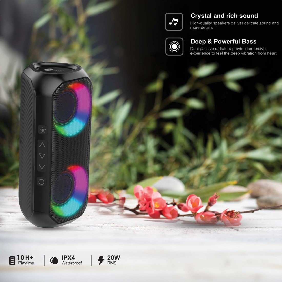 AFRA Bluetooth Speaker | 24W Ultra Bass | RGB Lighting | IPX4 Waterproof | AF-0024BSBK