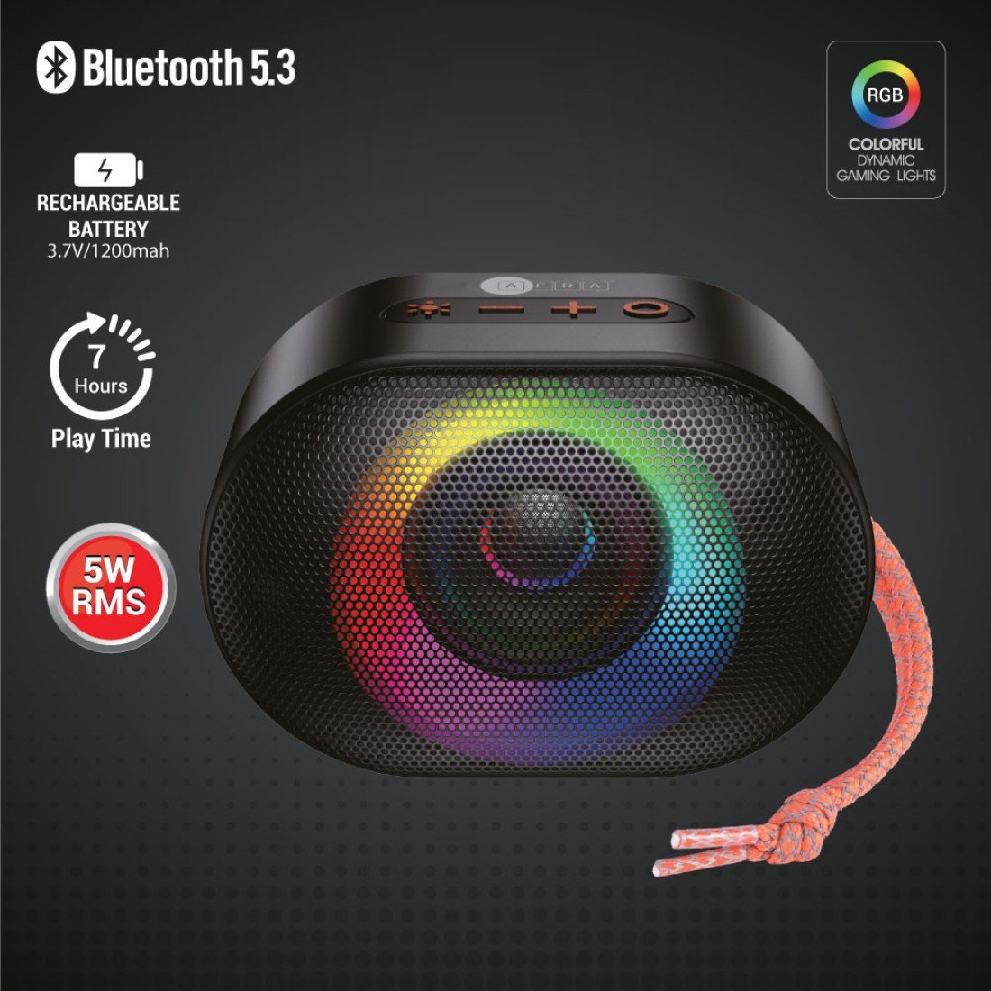 Finished in a sleek black plastic body, it combines modern aesthetics with durability. The built-in dynamic RGB lighting enhances your music experience with vibrant colors, while the 7-hour playtime ensures uninterrupted enjoyment of your favorite tracks. Lightweight and portable, this speaker easily connects to your devices via Bluetooth for hassle-free wireless audio. Backed by a 2-year warranty, it’s the perfect combination of sound, style, and reliability from AFRA.