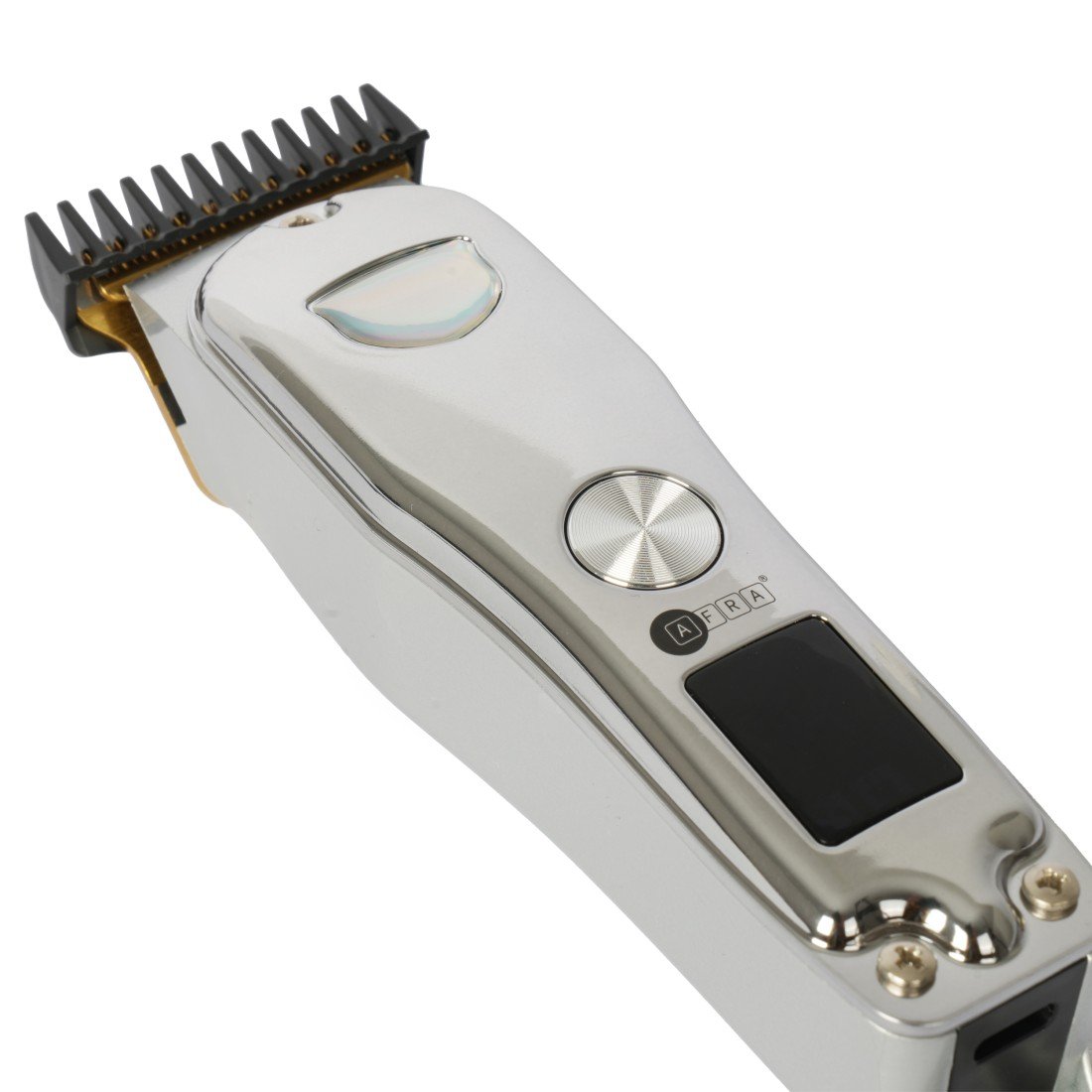 The AFRA Hair Clipper (Model AF-0005HCWT) offers powerful and precise hair cutting with a 5W motor, making grooming effortless and efficient. Equipped with a 600mAh lithium-ion battery, it delivers up to 100 minutes of cordless runtime after a full USB charge. The digital display provides real-time battery status for convenient monitoring. Its IPXO water resistance rating ensures durability and easy cleaning. Compact and ergonomic, this hair clipper is ideal for home or travel use and comes with a 1-year warranty for reliable performance.
