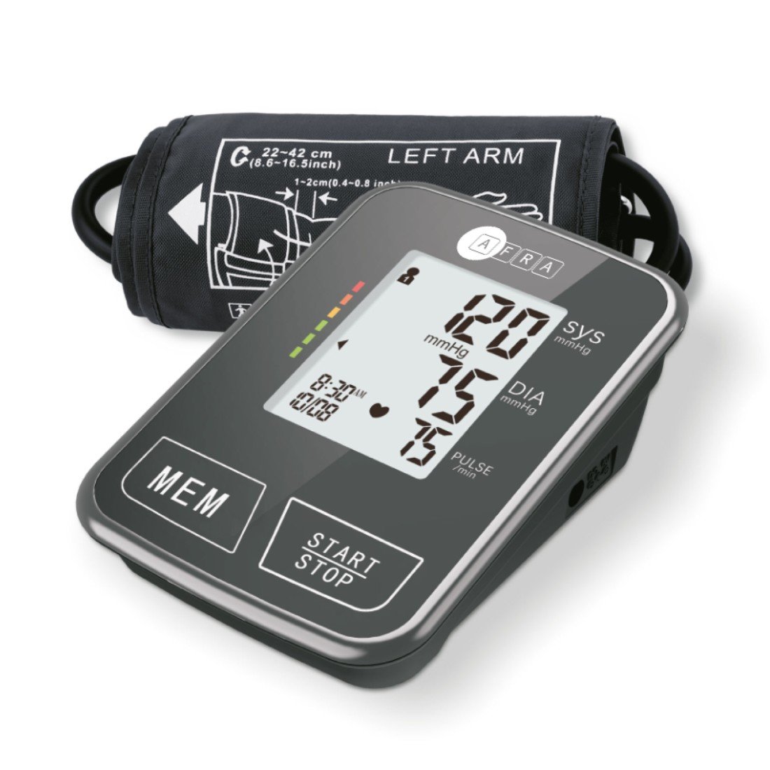 The AFRA Digital Blood Pressure Monitor AF-200BPMA is a reliable and easy-to-use device designed for accurate blood pressure monitoring at home. Featuring a comfortable arm-type cuff in a compact small size and sleek black design, it ensures precise measurements with convenience. This monitor is ideal for individuals seeking to keep track of their health effortlessly. It comes with a 2-year warranty for peace of mind and quality assurance.