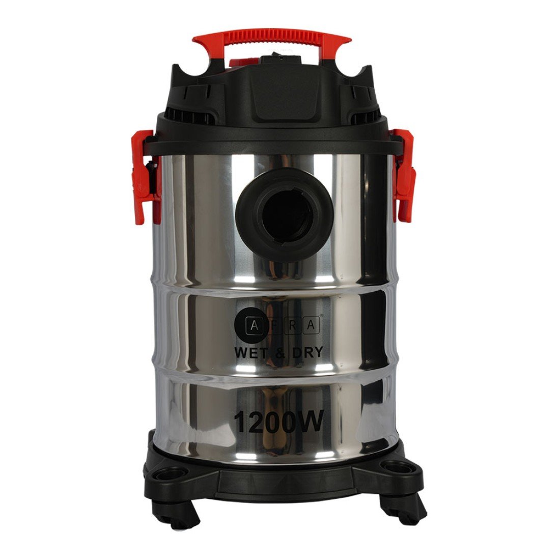 AFRA Wet and Dry Vacuum Cleaner AF-1200VCSS combines efficiency, durability, and versatility. With a 1200W motor and 20L capacity, it offers reliable suction for both wet and dry surfaces. The 2-in-1 brush and nozzle system adapts to different surfaces, while the 3.5-meter cord provides extended reach for larger cleaning areas. Its stainless steel casing ensures long-lasting durability, ideal for both home and light commercial use. Easy to maneuver and built for performance, this vacuum is backed by a 2-year AFRA warranty for your peace of mind.