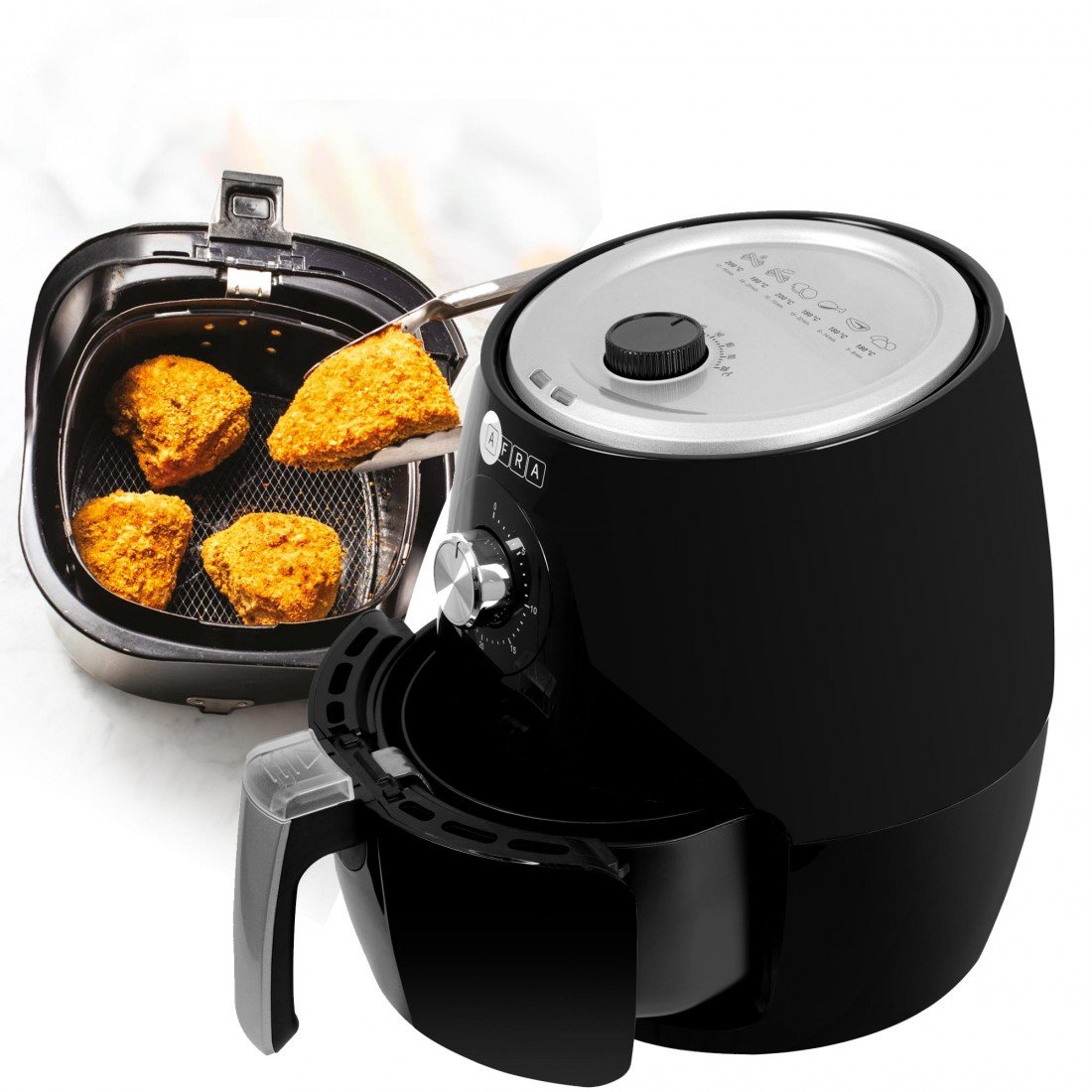 Cook your favorite meals the healthy way with the AFRA Air Fryer AF-2515AFBK. Engineered for high performance, it delivers 1300-1500W of power and a 2.5-liter capacity, perfect for frying, baking, and grilling with minimal oil. This model features adjustable temperature control, overheat protection, and non-slip feet for maximum safety. A cool-touch handle ensures ease of use, confirm top-level quality and compliance. Backed by a 2-year warranty, the AFRA air fryer is a reliable and energy-efficient kitchen companion for every modern home.