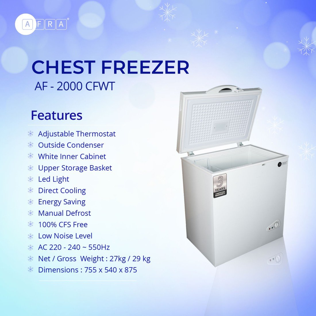 AFRA Chest Freezer 200L – Low Noise, Energy Saving, ESMA Approved – Model AF-2000CFWT