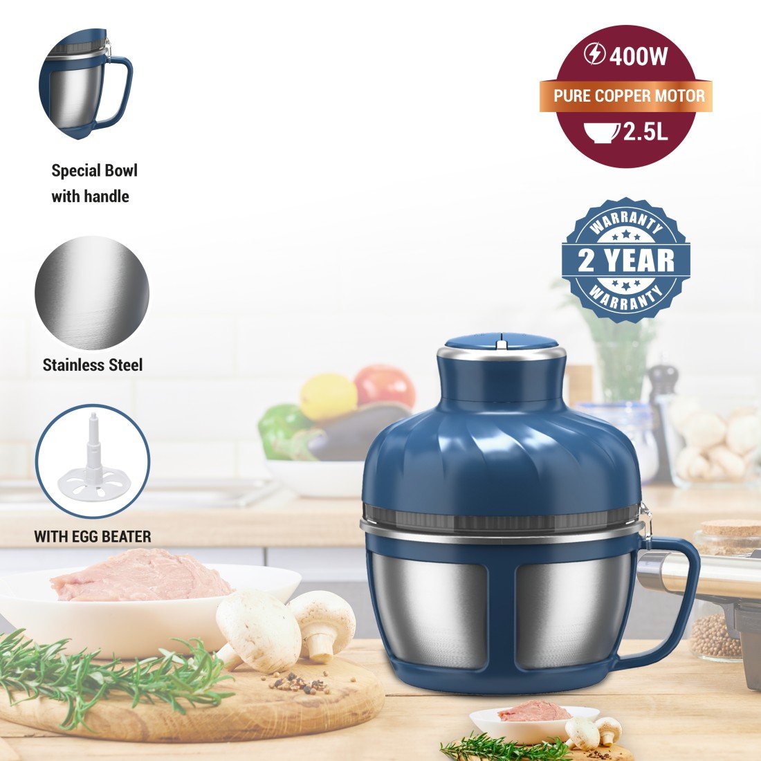 AFRA 400W Stainless Steel Chopper – 2.5L Bowl, 2-Speed, Copper Motor – AF-425CHSS