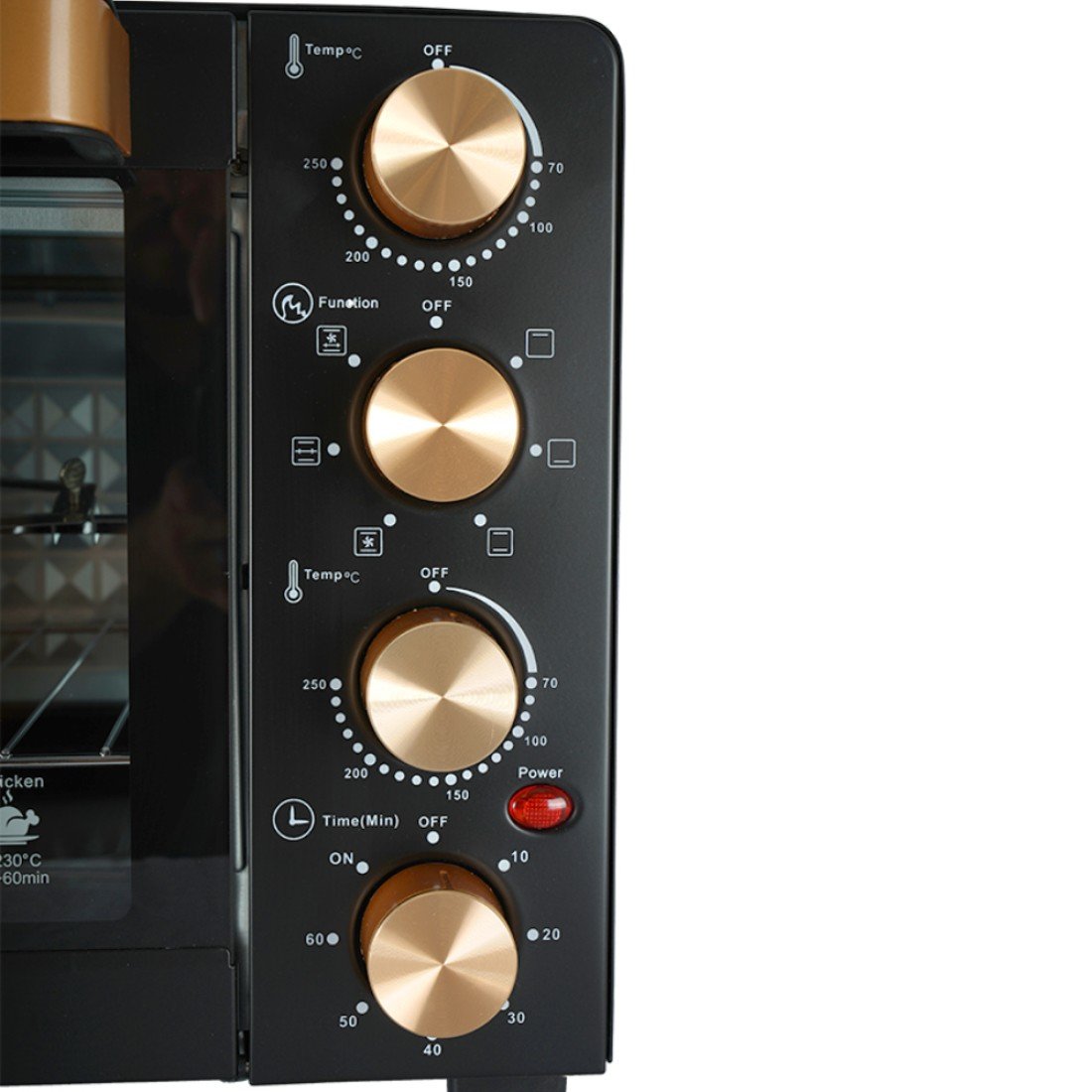 Experience professional-grade cooking with the AFRA Electric Oven Toaster – Model AF-8022OTBK. Featuring a massive 80-liter capacity and 2200W high-performance power, this oven is designed for large families, commercial use, or anyone who needs power and volume in one appliance.It boasts 7 versatile functions, including convection baking and rotisserie cooking, allowing you to grill, bake, toast, and roast with precision. The built-in oven lamp ensures clear visibility, while the adjustable thermostat lets you set cooking temperatures from 70°C to 250°C.The 4 easy-turn knobs give you simple control over time, temperature, and functions. It includes essential accessories like a baking tray, grill rack, and handle. Its sleek black finish adds a professional touch to your kitchen. the AFRA 80L oven toaster is a reliable, durable, and stylish addition to your home or restaurant.