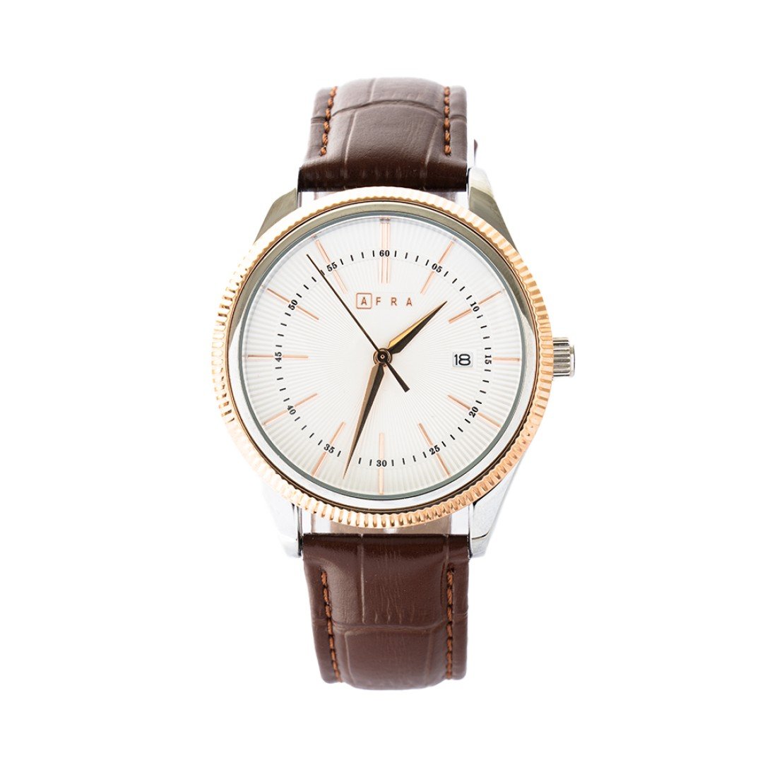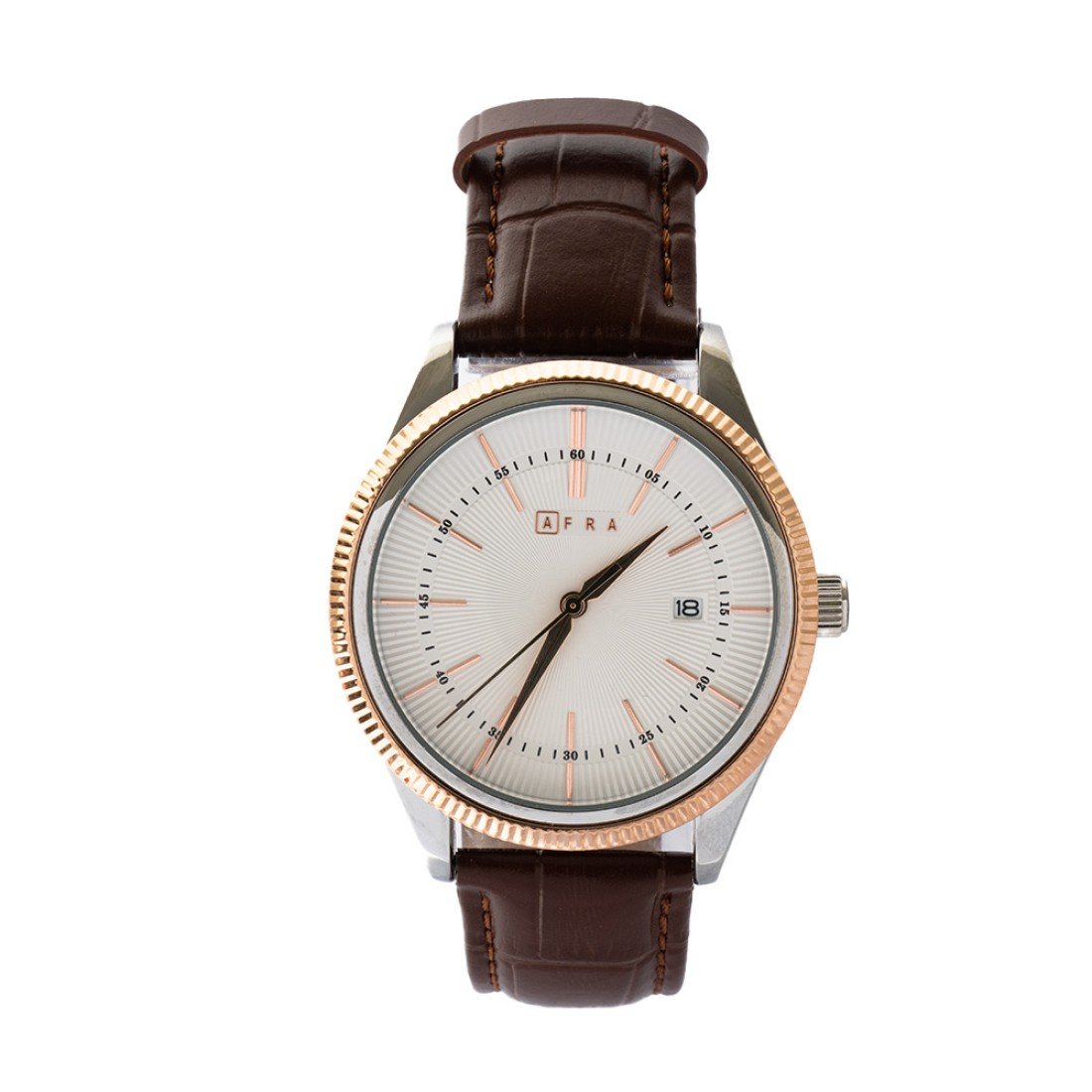 AFRA Gents Watch | Rose Gold Case | White Dial | Brown Leather Strap | Model AF11801