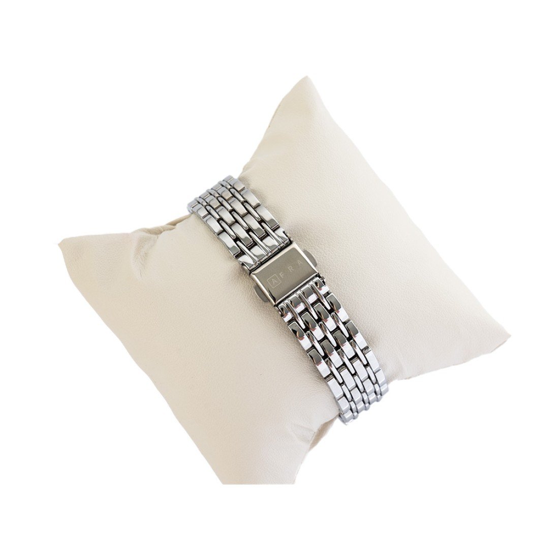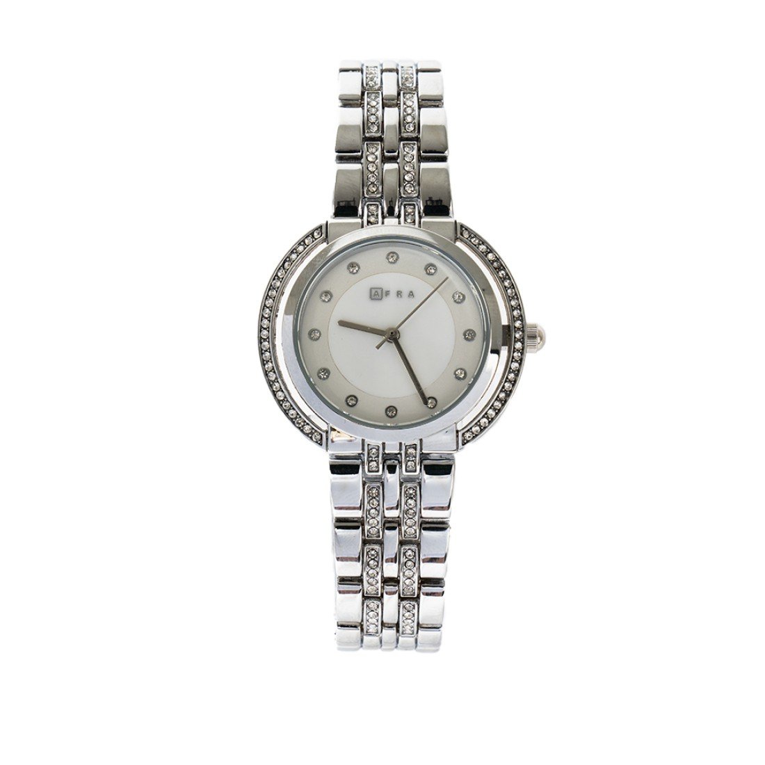 Refined and graceful, the AFRA Helene Ladies Watch AF22101 embodies timeless sophistication. Featuring a polished silver-tone case, an elegant silver mother-of-pearl (MOP) dial, and a sleek silver bracelet, this timepiece is designed for women who appreciate subtle luxury and everyday elegance. Powered by a precise quartz movement, the Helene AF22101 delivers reliable timekeeping with style. Whether worn at the office, on a casual day out, or for formal events, this elegant watch is the perfect accessory to elevate any outfit.