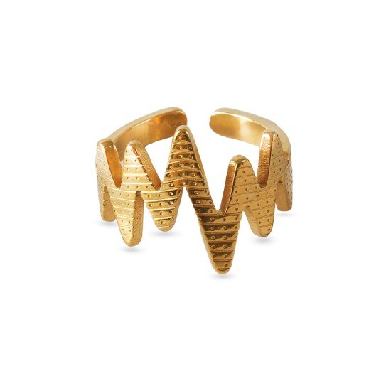 Celebrate life’s rhythm with the AFRA JEW Heartbeat Ring in radiant gold stainless steel. This ring features a sleek and modern heartbeat-inspired design, symbolizing energy, emotion, and connection.