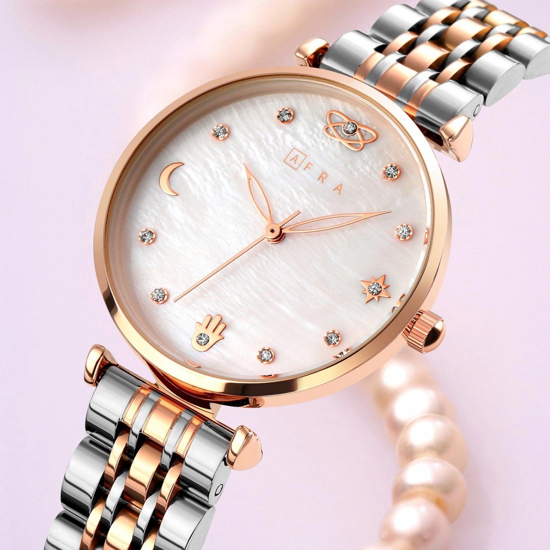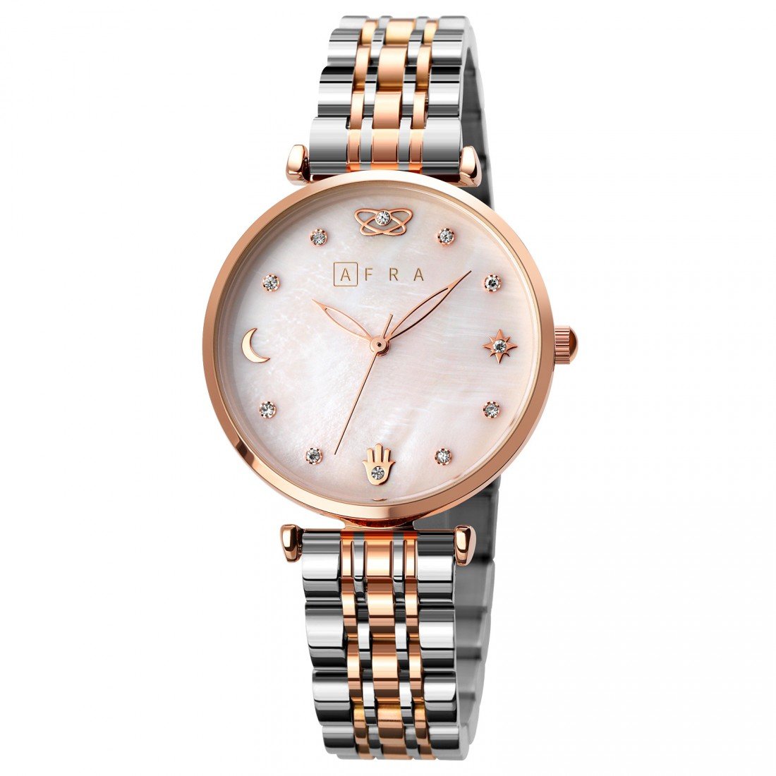 AFRA Luna Ladies Watch | Silver Case | MOP Dial | Silver Bracelet with Latch | Water Resistant 30m