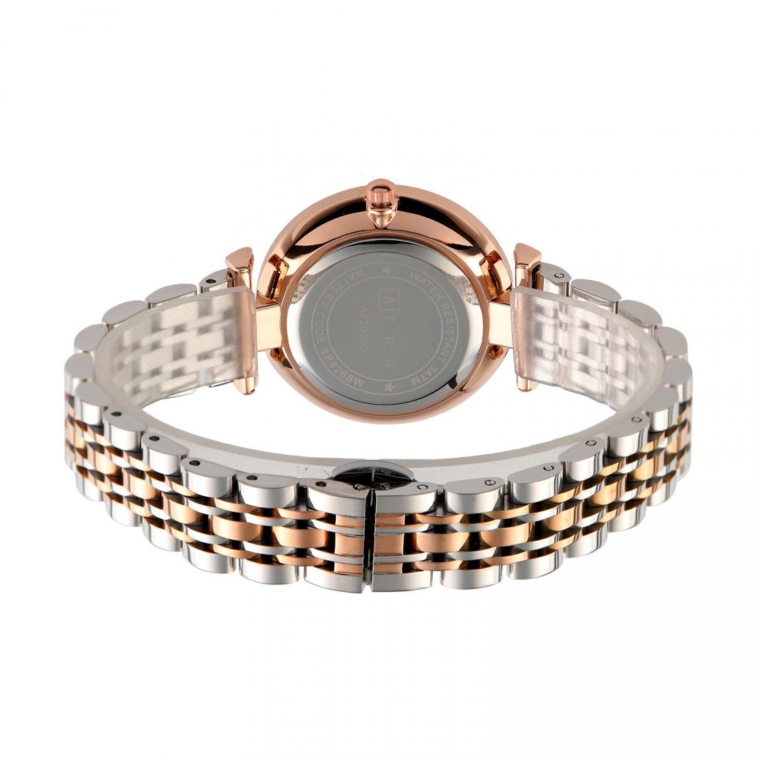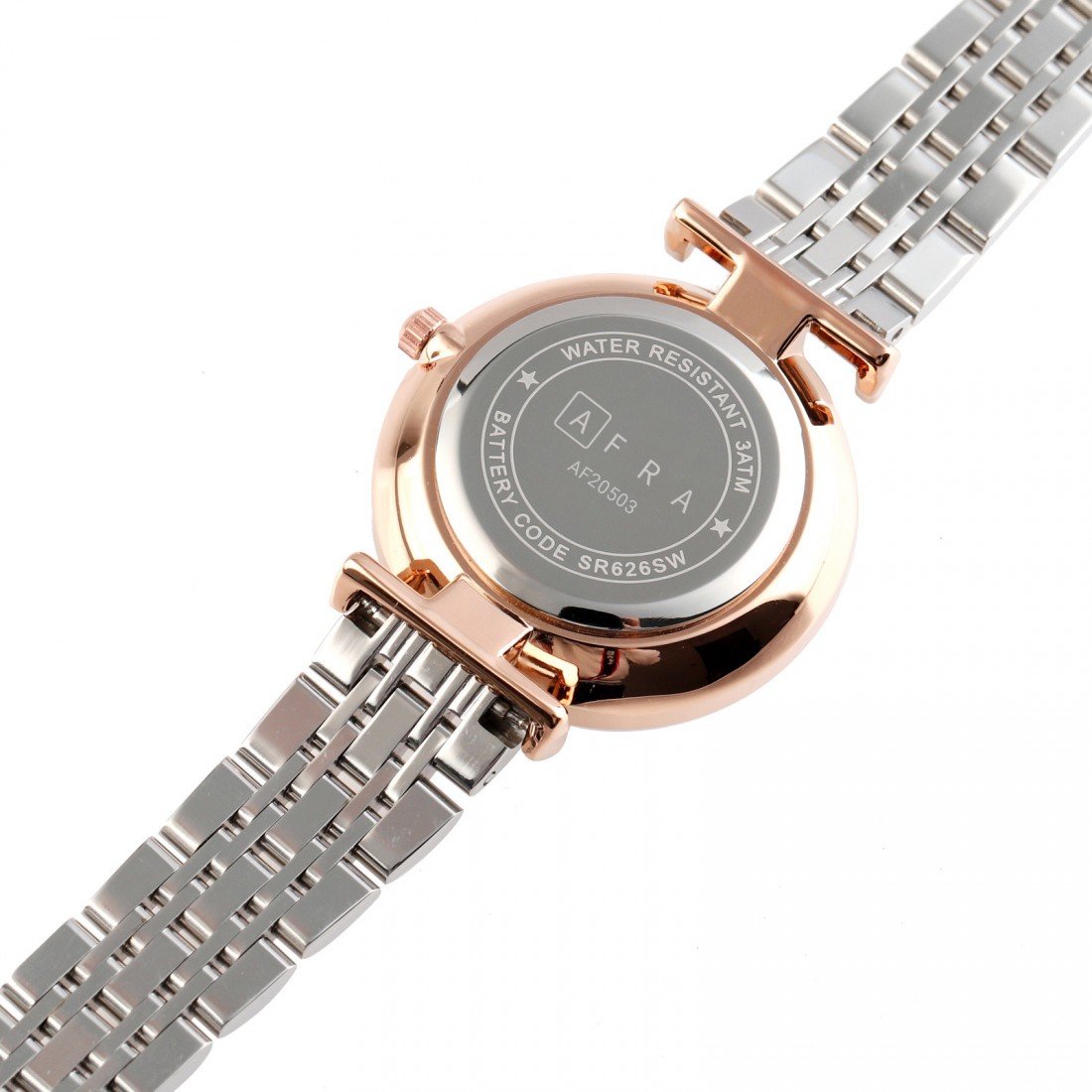 The AFRA Luna Ladies Watch AF20501 combines elegant design with durable functionality. Featuring a polished silver metal alloy case and a luminous mother-of-pearl (MOP) dial, this watch exudes sophistication. The matching silver bracelet with secure latch ensures comfortable and reliable wear. With water resistance up to 30 meters and powered by precise quartz movement, the Luna AF20501 is perfect for everyday elegance and dependable timekeeping.