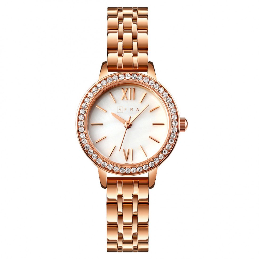 The AFRA Ornate Ladies Watch AF21304 is a beautifully crafted timepiece that reflects understated luxury and femininity. Designed with a refined rose gold-tone case, a crisp white dial, and a coordinated rose gold metal bracelet, it’s an ideal accessory for both everyday wear and elegant occasions. Powered by precise quartz movement and offering 30 meters water resistance, this watch blends timeless aesthetics with daily practicality. The AFRA Ornate AF21304 is an exquisite statement of sophistication on your wrist.