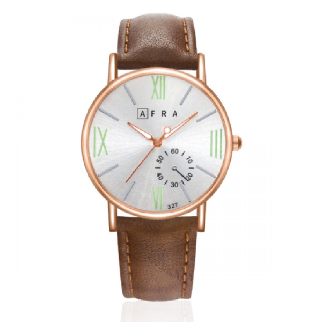 The AFRA Triton Gents Watch | Model AF10801 is the perfect blend of classic sophistication and modern style. Crafted with a luxurious rose gold case, clean white dial, and rich brown genuine leather strap, this timepiece is ideal for men who appreciate refined elegance and everyday function.