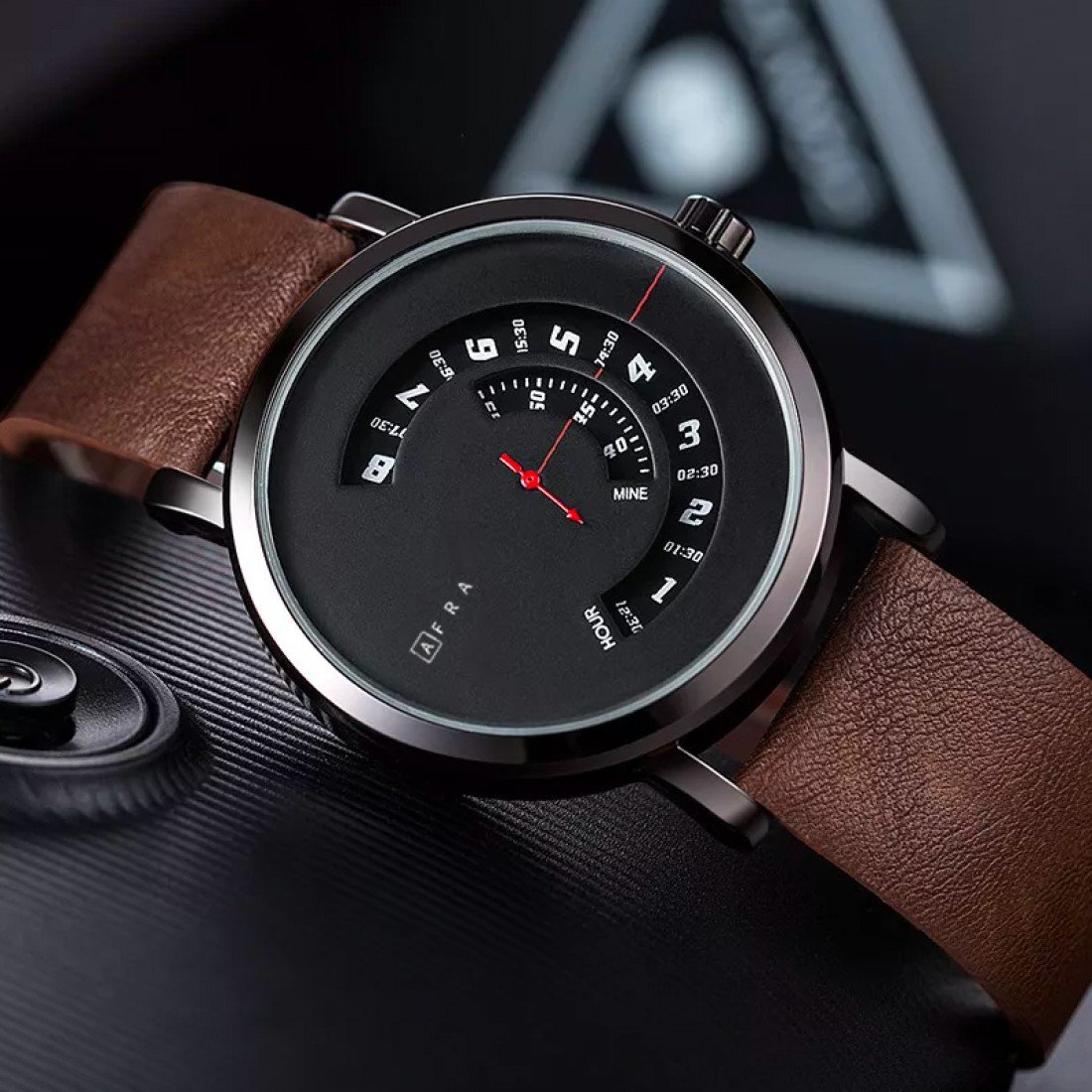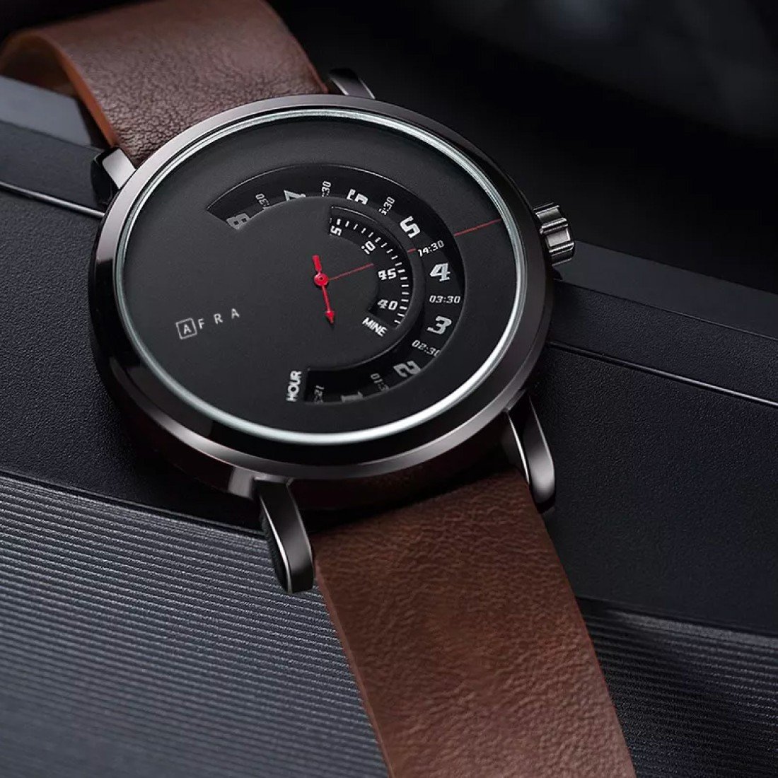 Command attention with the AFRA Phantom Gentleman’s Watch AF10502, a bold timepiece that combines rugged durability with refined style. Featuring a sturdy metal case, deep black dial, and a premium genuine leather strap, this watch offers a striking design fit for any occasion. Its quartz movement ensures precise timekeeping, while the 30-meter water resistance makes it suitable for everyday use. Whether at work or out at night, the AFRA Phantom delivers powerful aesthetics and practical performance in one sleek package.